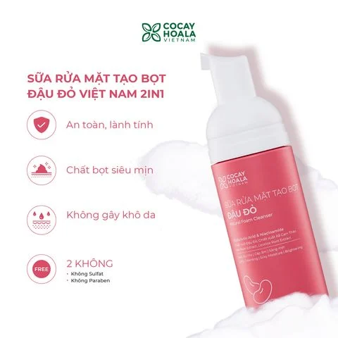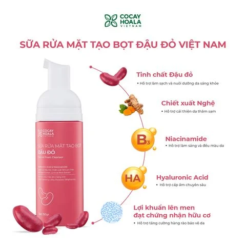 Chiết xuất Đậu Đỏ: với lượng vitamin A, E, C dồi dào giúp làm sạch da 1 cách dịu nhẹ, đồng thời cấp ẩm và dưỡng trắng cho làn da mềm mại và trông sáng mịn