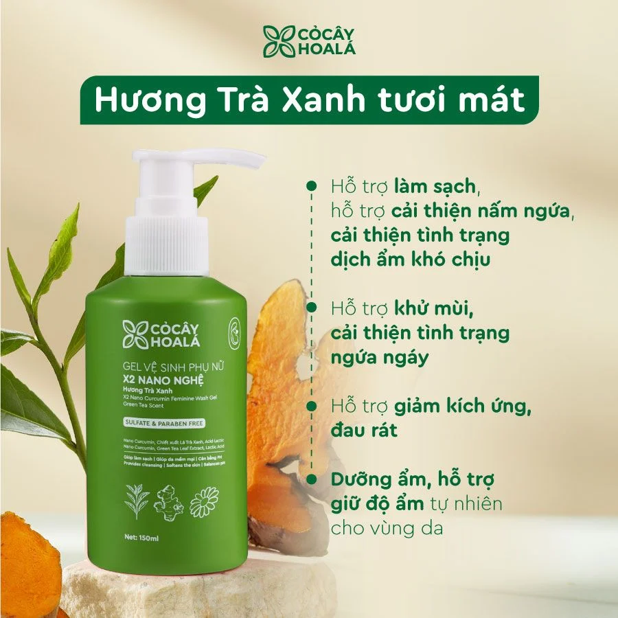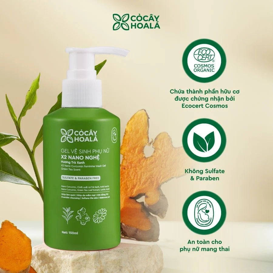 Gel vệ sinh x2 nano nghệ hương trà xanh là sự kết hợp hoàn hảo từ những nguyên liệu thiên nhiên được tuyển chọn kỹ lưỡng như tinh chất trà xanh, nano curcumin nghệ, berberin, tất cả đều sở hữu những lợi ích riêng như: