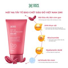 - Bột Đậu Đỏ: hạt đậu đỏ nghiền mịn là nguyên liệu tuyệt vời để tẩy da chết, với tính chất hạt "xơ mềm" giúp loại bỏ tế bào chết và xỉn màu một cách dịu nhẹ cho làn da, không làm tổn thương da, đồng thời nuôi dưỡng cho làn da sáng mịn